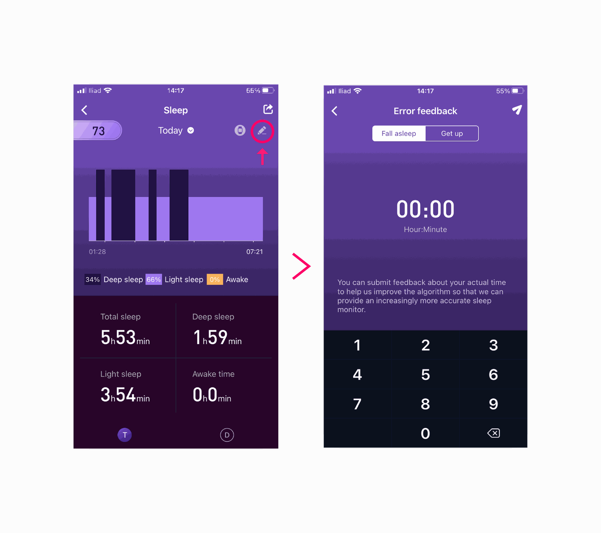 By submitting this feedback, you will help us improve the algorithm so that we can provide an increasingly more accurate sleep monitor.