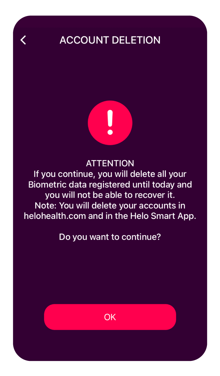 Please note: signing up again in the App with the same credentials as the account you deleted will not reactivate the old account and the related data.