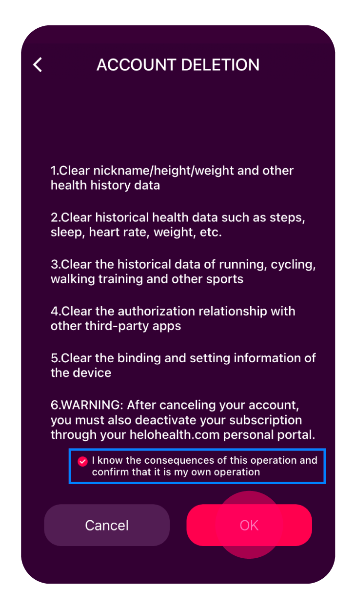 5. A last alert will inform you of all the data you are going to clear. If you are sure about it, check “ I know the consequences of this operation and confirm that is my own operation ”, then, click on “ OK ” to complete the operation.