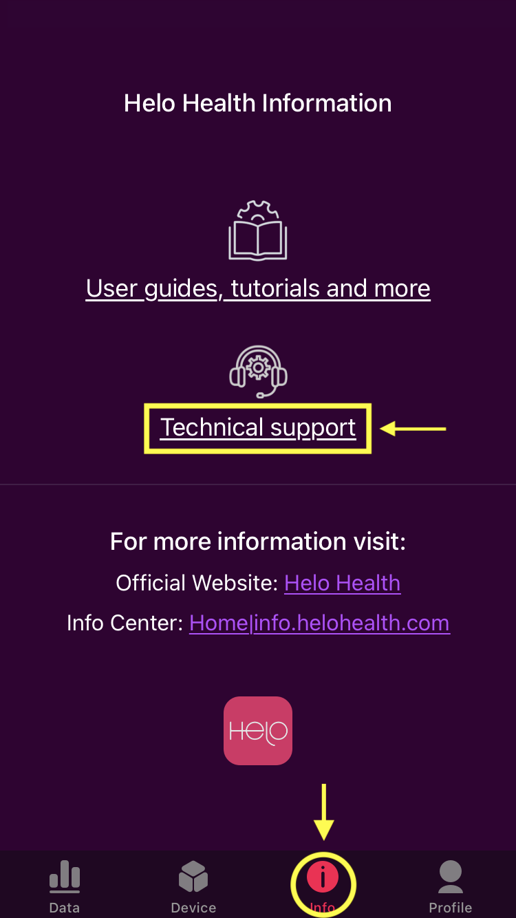1. Go in the Helo Smart App > Info (located at the bottom, second icon from the right).
